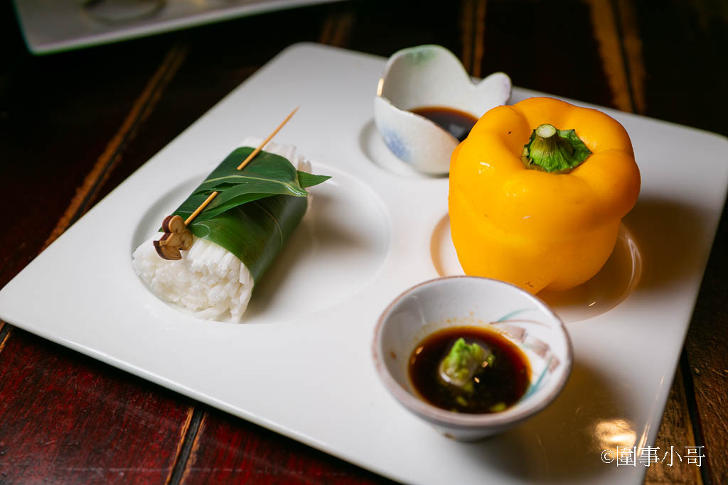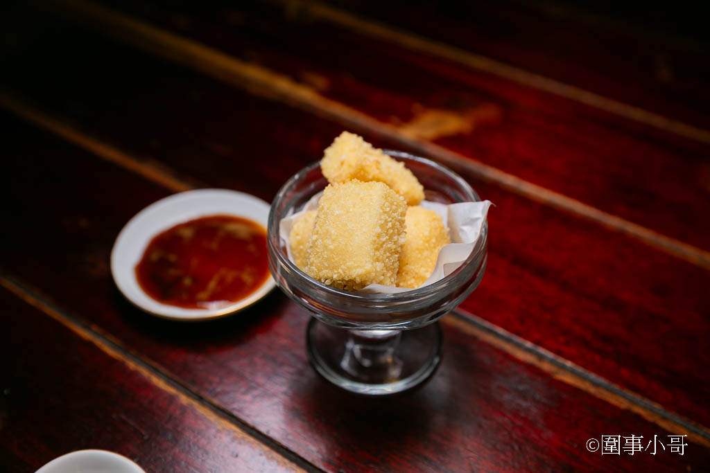 外酥內嫩到不行啊!但請注意吃的時候不要太豪邁~因為裡面的豆腐挺燙的喔!然後我個人很推薦沾一點附的蒜蓉醬油膏。我有個在中壢也是做無菜單料理的廚師朋友,因為他年輕時待過萬華好一段時間,有次跟他聊天的時候我就問他有沒有吃過三十三間堂?他說當然有!食材跟料理都沒話說,而他印象最深的就是這道外酥內嫩的炸豆腐了。