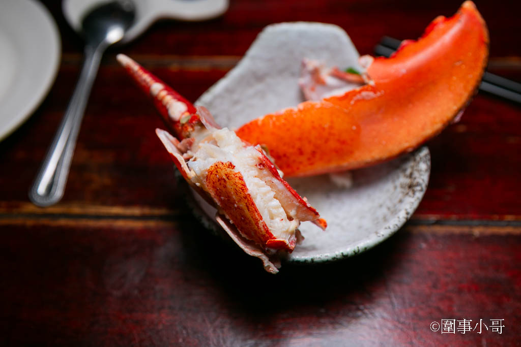 碩大的蟹螯在料理時已經預先敲出裂痕,不只為了讓龍蝦能更入味,也方便客人食用~用手一掰就可以把整塊的蟹肉取出來~直接一口咬下去!啊~~~太迷人太滿足了,特地搭火車來萬華吃這家三十三間堂真的太值得了。