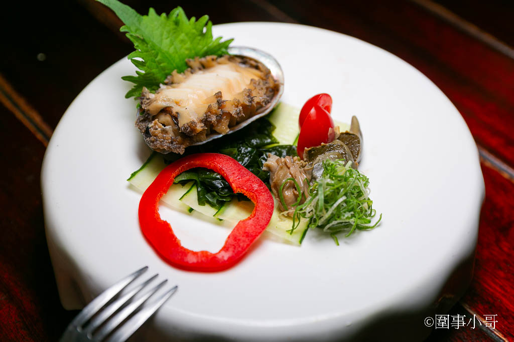 這鮑魚保證新鮮!因為我可是第一次看到廚師敢把鮑魚的內臟獨立出來做小菜的。鮑魚的賣點除了本身的肉質軟嫩Q彈又多汁之外,我個人最愛吃的還包含了鮑魚的內臟,也就是那一團黃黃綠綠的東西!