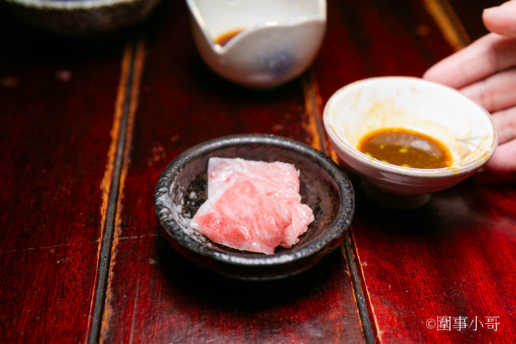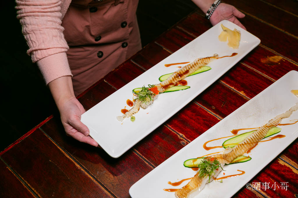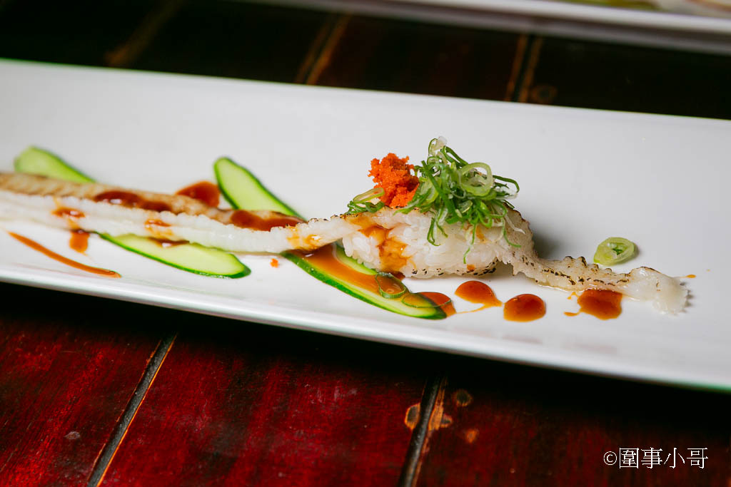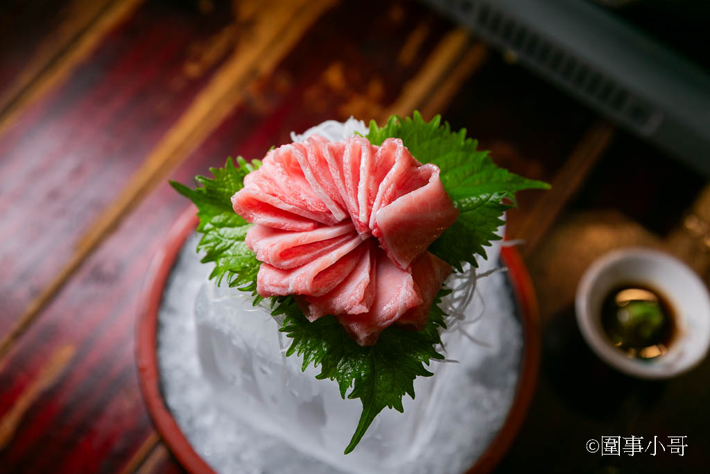 雖然生魚片的厚度有點偏薄啦,但是下刀的時候很巧妙的把筋夾雜在生魚片裡,吃起來口感帶著三分的爽脆與嚼勁。