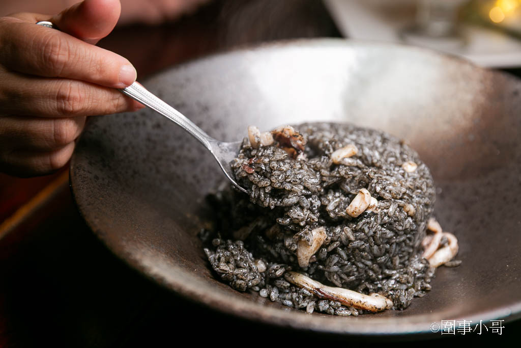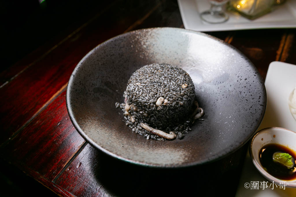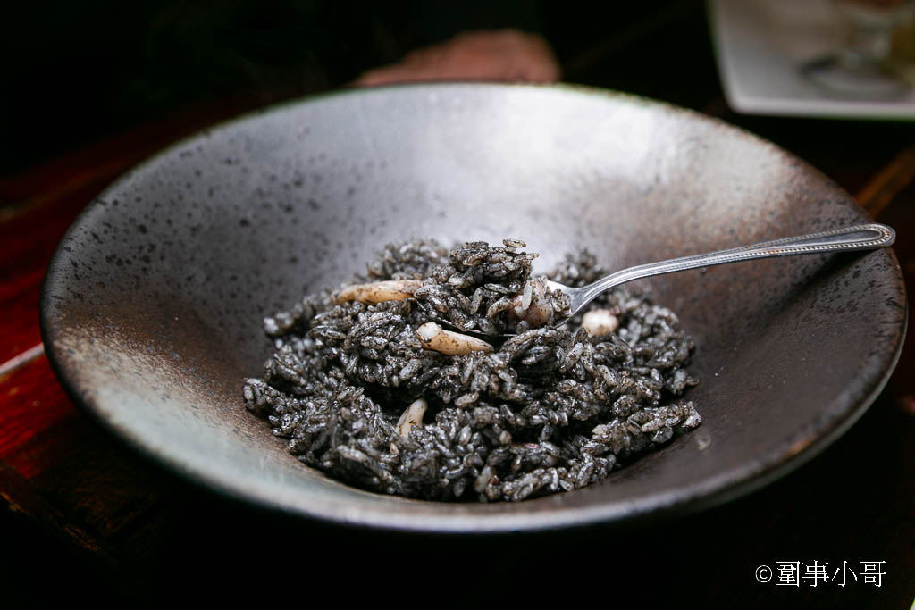 "你吃看看,看你吃了之後還會不會說這碗是墨魚飯吧!",喔拜託~這看著就是墨魚飯啦!我挖起一勺黑飯正要吃的時候,咦?等等,這香味絕對不是墨魚飯呢!怎麼聞起來很像香噴噴的炒飯?????