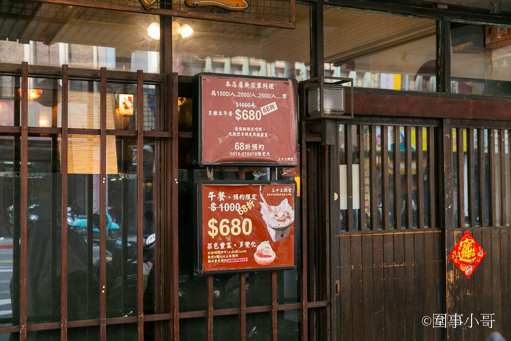 之前帶太太到旁邊的小林英夫吃過飯,就有在地網友推薦說一定要到三十三間堂來試試她家的無菜單料理。在地經營三十多年,號稱萬華最早的無菜單料理,不只食材新鮮餐點美味可期,重點是老闆娘很有個性!剛好想趁這個時間來慰勞一下太太,畢竟她每天都要照顧那麼多的學生,就讓我拿出我的私房錢來去三十三間堂辦個小小的春酒宴吧!